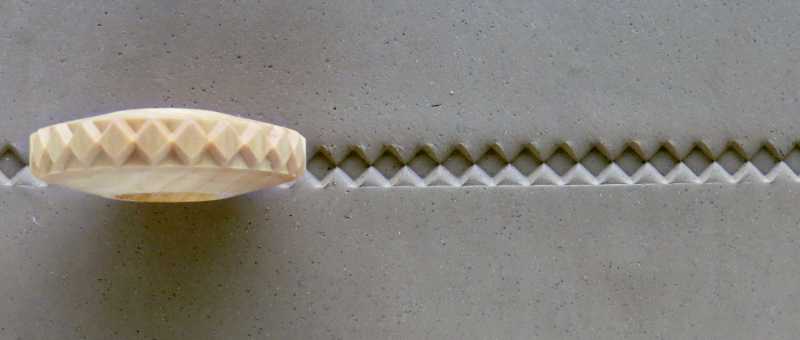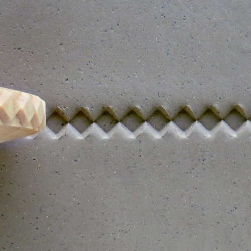 Finger Rollers have a rolling design face that is 0.8 cm (8 mm) across. The Finger Rollers are designed to roll across clay or other soft media to create patterns along straight lines, curvy lines, and borders.